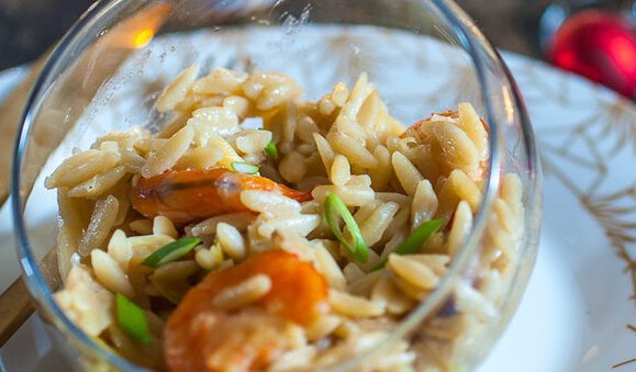 Délicieux risotto avec des pâtes en bec d’oiseaux. avec crevettes et poireaux , d’où le nom de pastasotto 🙂