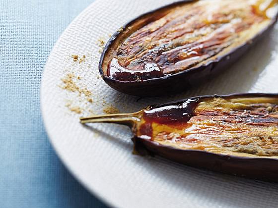 - À mi-cuisson, ajoutez la sauce soja et le miel ou sirop d’érable afin de faire croustiller la chair des aubergines.