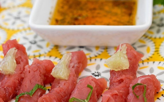 Le carpaccio de boeuf de Bigard avec sa sauce citron vert et menthe.