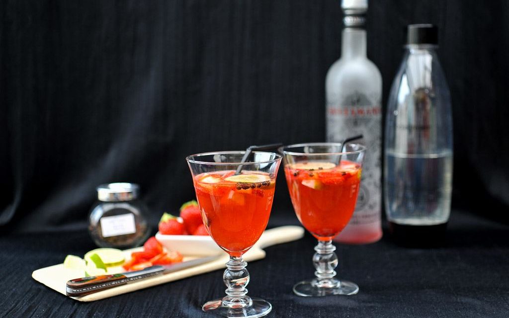 Pour mon gin tonic avec des fraises j’ai mixé des fraises sucrées avec des grains de poivre kumpot.