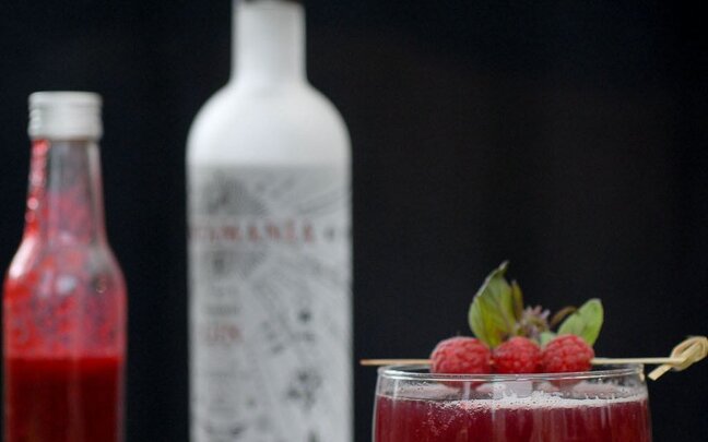 Pour réaliser ce cocktail, il faut réaliser auparavant un sirop de framboises. ou l’acheter…