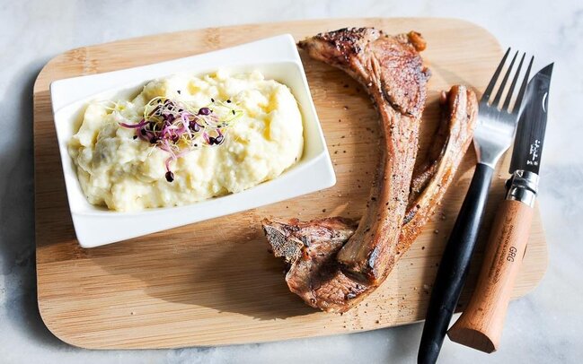 Une bonne côte d’agneau avec une purée maison. Un régal qui nous replonge dans l’enfance.