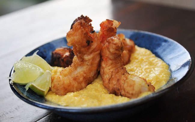Crevettes panées avec sa purée de maïs