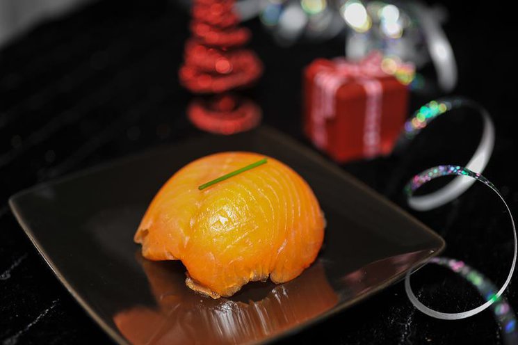 - Repliez les bords de la tranche de truite fumée vers le centre