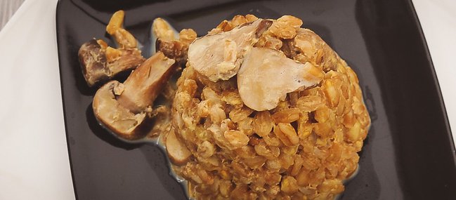 Allez, on va en cuisine pour préparer ce risotto d’épeautre aux champignons