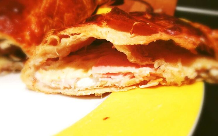 - Dérouler votre pâte feuilletée et étaler sur la moitié de la pâte le fromage frais.