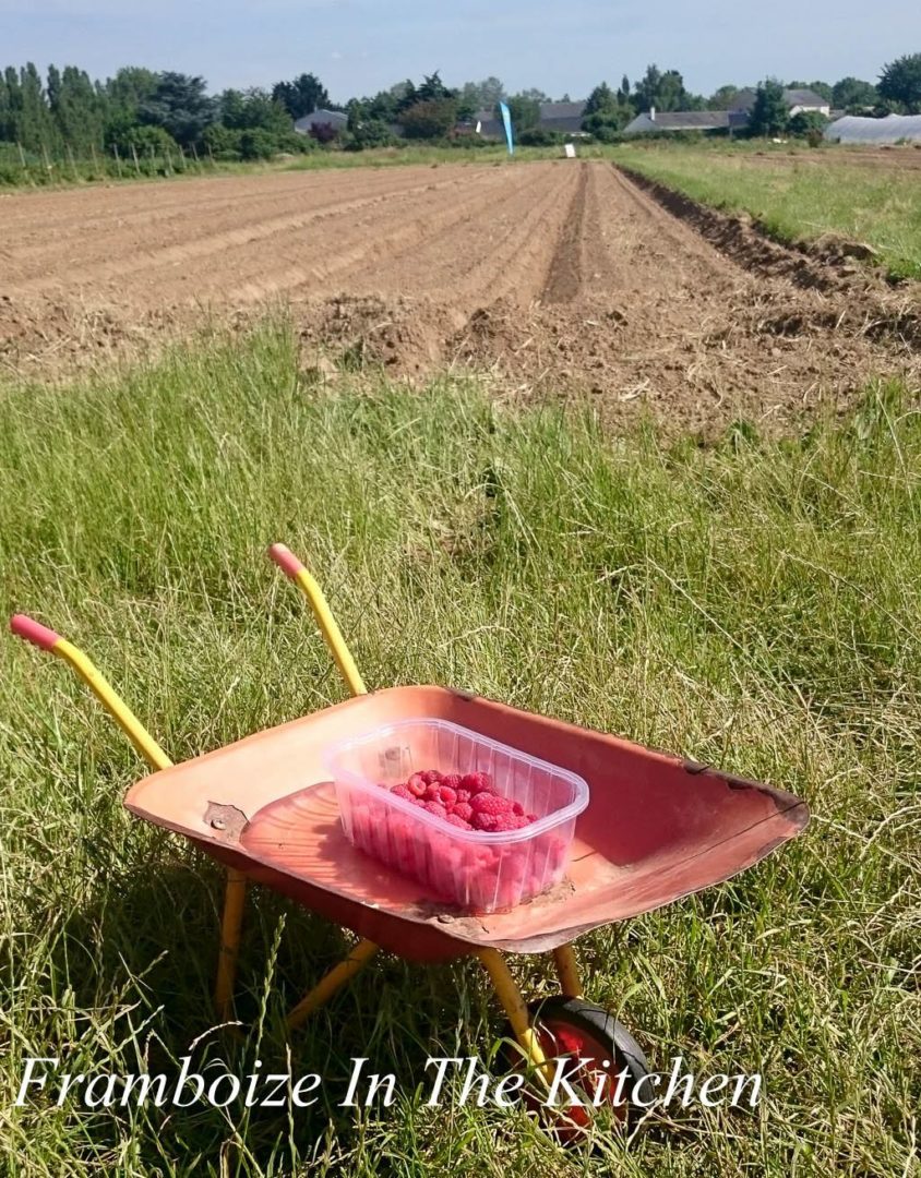 Dans leur ferme j’ai cueilli des framboises (étonnant non 😉 ) des tomates, des concombres, des salades, des courgettes, des fraises… un panier rempli.