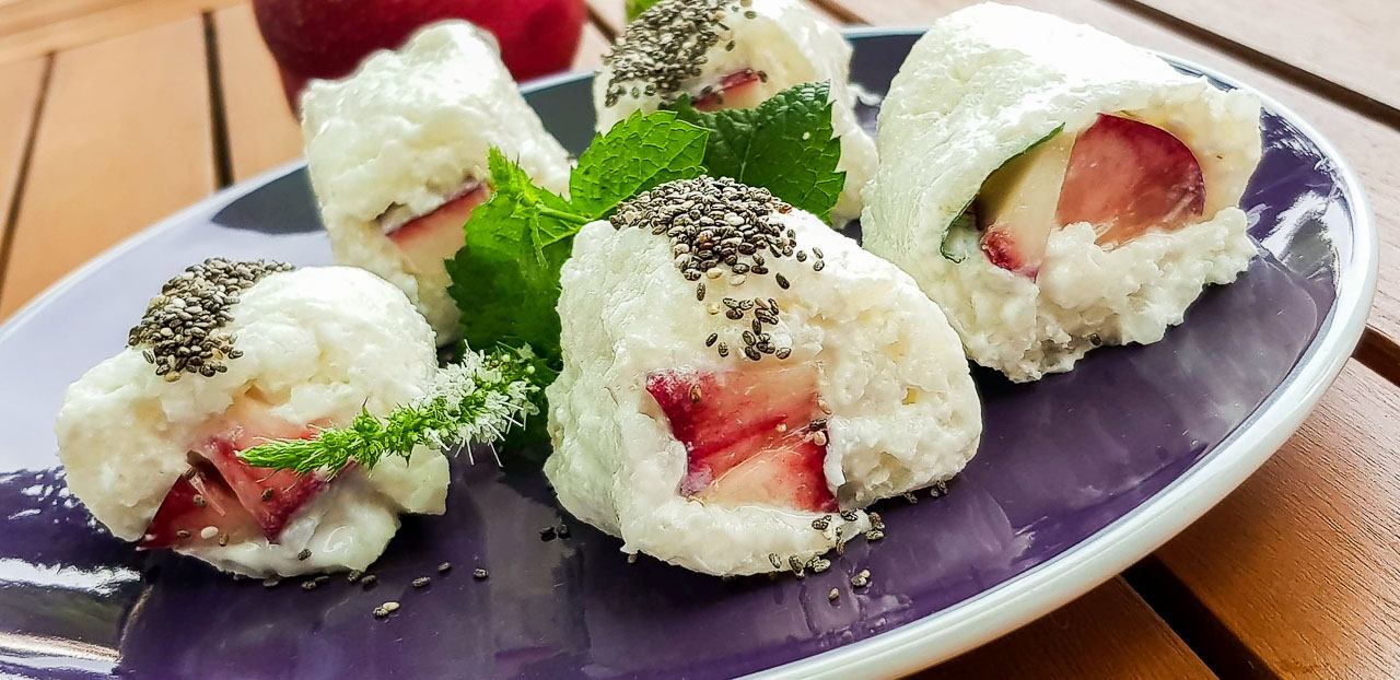 Et pour en revenir à la première question, voici la preuve que les makis sucrés existent ! Avec une recette de makis sucrés cuisinés au lait de coco et garnis de nectarine sanguines.