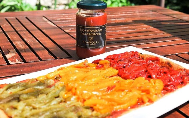J’ai utilisé un pot de sauce arabiata de chez Davoli Elle apporte un peu de piquant à la douceur des poivrons