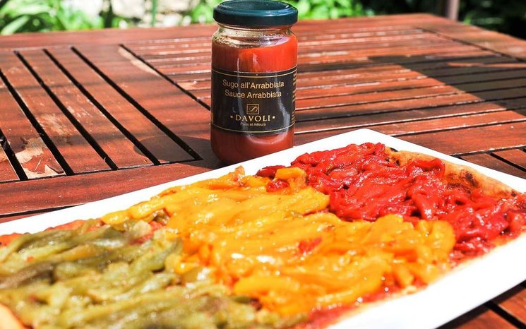 Je vous donne la recette de ma pizza aux trois poivrons avec la sauce arabiata de Davoli