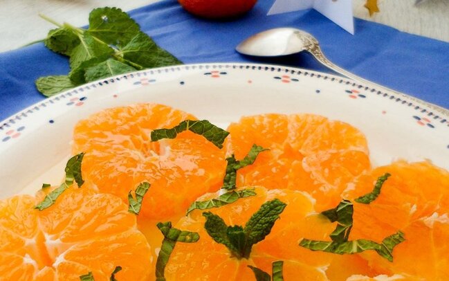 - Faites réduire le sirop, puis versez le à travers une passoire sur les clémentines Parsemez des feuilles de menthe.