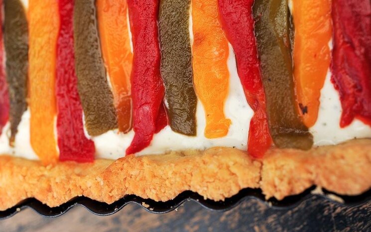 - Séparez bien les 3 couleurs en découpant des lanières dans la chair grillée des poivrons