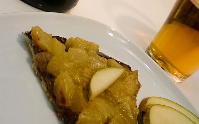 Je vous livre ici la tarte poires chocolat qui s’accorde parfaitement avec le Cidre de poire Val de Rance : Envie de Gourmandises et chocolat
