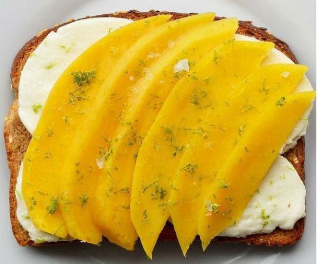 - Ajoutez quelques fines tranches de mangues joliment mises en éventail