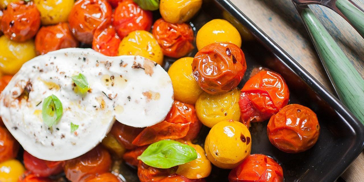 Tomates cerises rôties et mozzarella burrata di buffala
