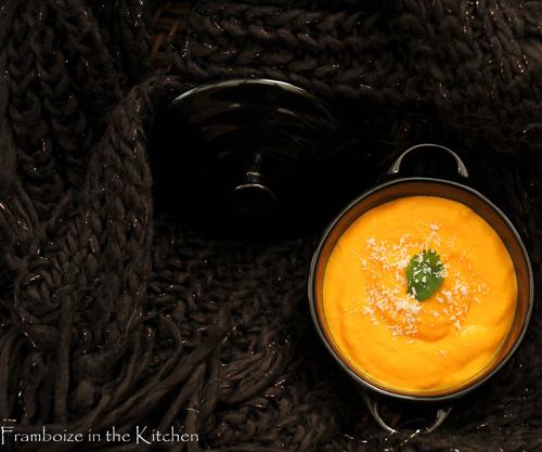 Alors franchement, il n’y a rien de mieux qu’un velouté de carottes au lait de coco pour se remonter le moral, se réchauffer les os et se faire du bien tout simplement. (le premier qui chante la chanson de Bibie : je le frappe !)
