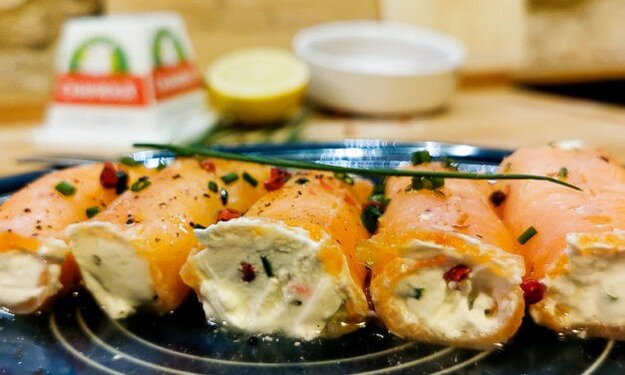 Roulés de saumon fumé au chèvre frais Chavroux