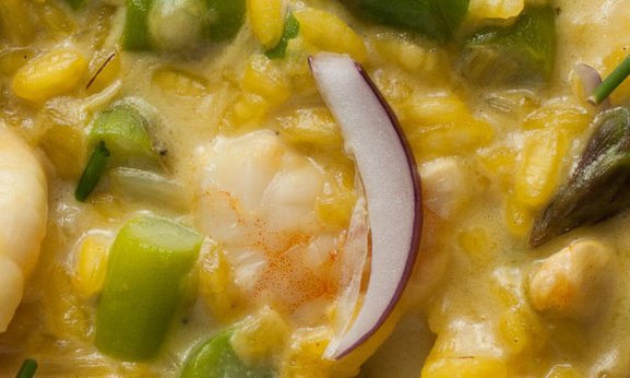 Risotto de gambas au safran et asperges vertes. Une recette délicieuse, simple à faire