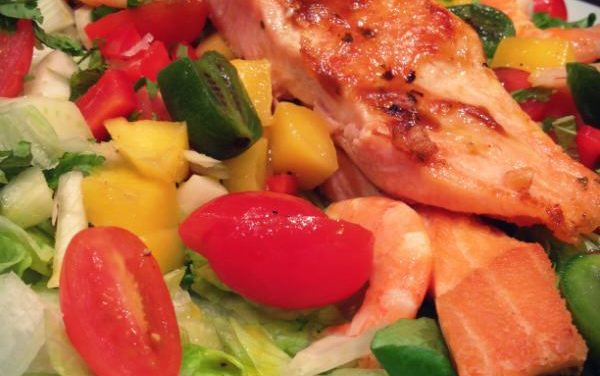 Cette idée de salade « mix » plat unique, m’est venue un soir où j’avais la flemme de faire à manger tout en ayant envie de manger un truc sympa… du saumon avec plein de trucs aussi 🙂 Pour 2 personnes / Temps de préparation : 20 min / Temps de cuisson : 10 min