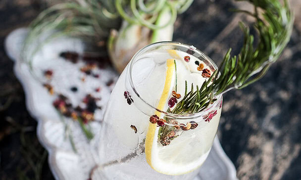 Un gin tonic avec le Gin XII de la distillerie et domaine de Provence avec une touche de romarin