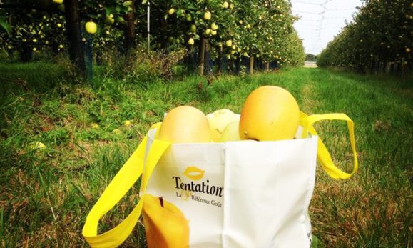 Visite dans les vergers d’Angers. Découverte de la pomme Tentation, juteuse et croquante, acidulée et sucrée, parfumée et fondante. C’est la meilleure !