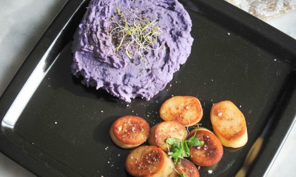 Recette très facile de boudin grillé à la Plancha Eno et une purée de vitelotte. Les pommes de terre violettes. De la couleur dans l’assiette.